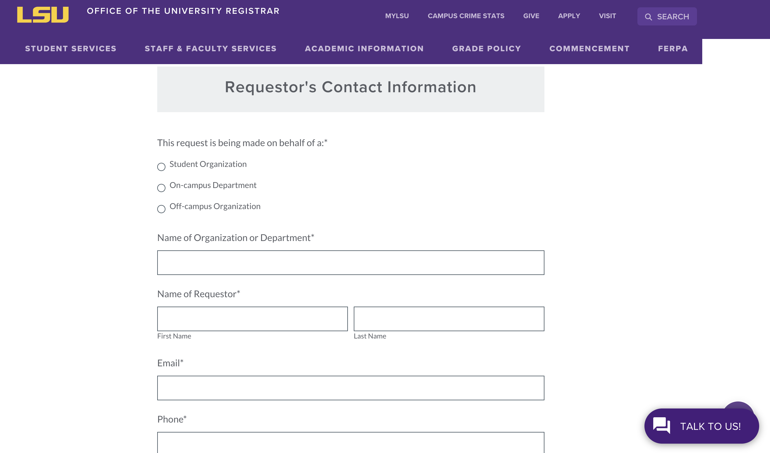 1. Visit the Office of the University Registrar website, then scroll down to Requestor's Contact Information.