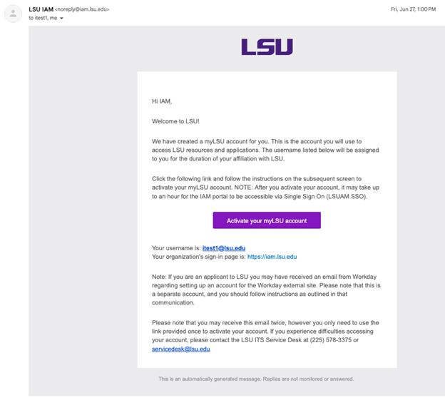 All newly created LSU accounts will receive the same activation email and require the same activation process.